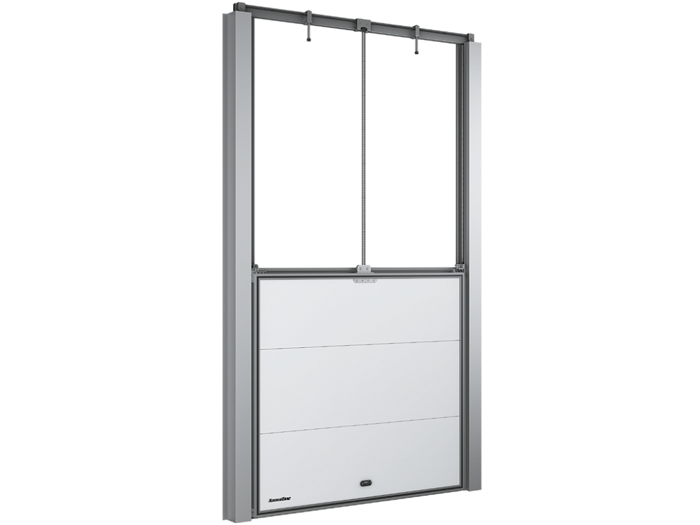 Благодаря вертикальному подъему полотна, двери требуют минимального бокового пространства, что позволяет установить несколько дверей на одной стене с небольшим интервалом.