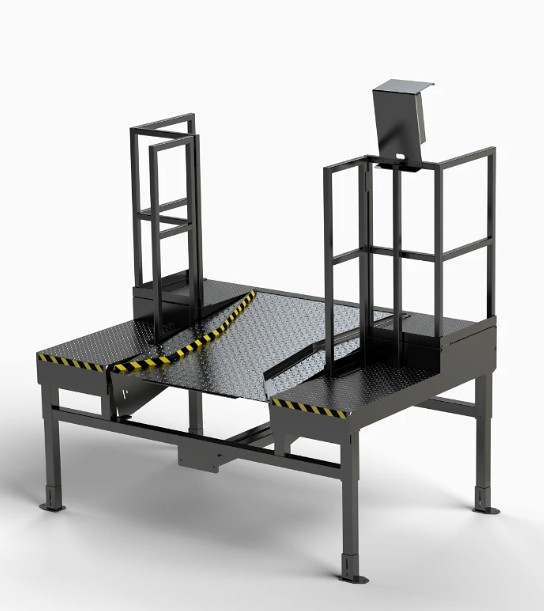 При проектировании модели учитывались ключевые аспекты: безопасность, производительность, удобство использования и качество. Телескопическая аппарель со скошенной передней кромкой адаптирована для работы с грузовыми автомобилями. Ступенчатая геометрия платформы позволяет осуществлять стыковку транспортного средства с закрытыми дверями, которые открываются после опускания платформы. Такое решение способствует максимальной оптимизации процесса погрузочно-разгрузочных работ.