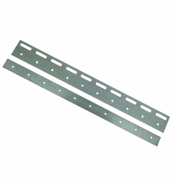 Зажимные пластины 300 мм из оцинкованной стали предназначены для крепления полосовой завесы ПВХ. Комплект состоит из двух частей: большой с ушками для навеса на карниз (гребёнку) и малой для фиксации ПВХ ленты. Крепёж для ленточных завесов ПВХ имеет «свободный ход», что позволяет отклонять ленту завесы в сторону. Поставляется также в размерах 200 мм и 400 мм.